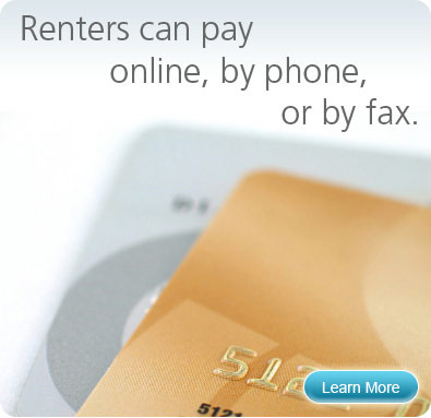 Online - Renters may pay at the property's community website or at www.RentPayment.com